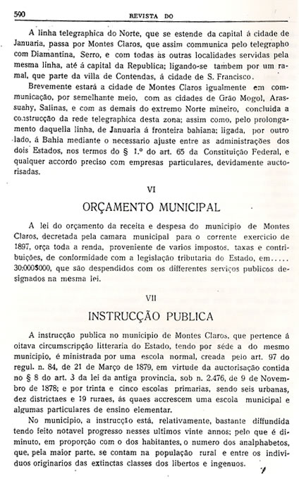 Transcrição da Revista do Archivo Público Mineiro, editada em Ouro Preto, então capital de Minas, em 1897. O conteúdo, doze anos antes, em 1885, saiu no primeiro jornal de Montes Claros, “Correio do Norte”, fundado e editado pelo autor – o depois desembargador Antônio Augusto Veloso, pai da imprensa de Montes Claros. É o mais antigo documento sobre a história de Montes Claros - Parte 36 - (As partes anteriores estão arquivadas na seção Colunistas - Web - Chorografia)![]() (Continuará, nos próximos dias, até a publicação de toda a "Chorografia") |