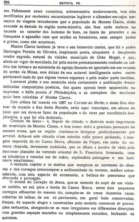 Transcrição da Revista do Archivo Público Mineiro, editada em Ouro Preto, então capital de Minas, em 1897. O conteúdo, doze anos antes, em 1885, saiu no primeiro jornal de Montes Claros, “Correio do Norte”, fundado e editado pelo autor – o depois desembargador Antônio Augusto Veloso, pai da imprensa de Montes Claros. É o mais antigo documento sobre a história de Montes Claros - Parte 13 - (As partes anteriores estão arquivadas na seção Colunistas - Web - Chorografia)![]() (Continuará, nos próximos dias, até a publicação de toda a "Chorografia") |