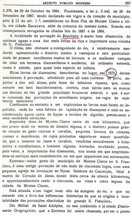Transcrição da Revista do Archivo Público Mineiro, editada em Ouro Preto, então capital de Minas, em 1897. O conteúdo, doze anos antes, em 1885, saiu no primeiro jornal de Montes Claros, “Correio do Norte”, fundado e editado pelo autor – o depois desembargador Antônio Augusto Veloso, pai da imprensa de Montes Claros. É o mais antigo documento sobre a história de Montes Claros - Parte 33 - (As partes anteriores estão arquivadas na seção Colunistas - Web - Chorografia)![]() (Continuará, nos próximos dias, até a publicação de toda a "Chorografia") |